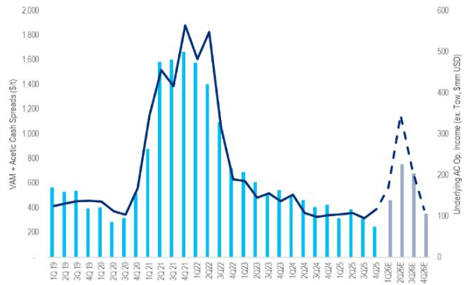 花旗重申塞拉尼斯(CE)为北美化学品首选股,目标价上调至 84 美元。受中东冲突影响,亚洲甲醇及醋酸价差大幅走阔,预计该公司 2026 年 EBITDA 将较市场共识高出 30%,显著受益于地缘政治带来的供应收紧与价格红利。