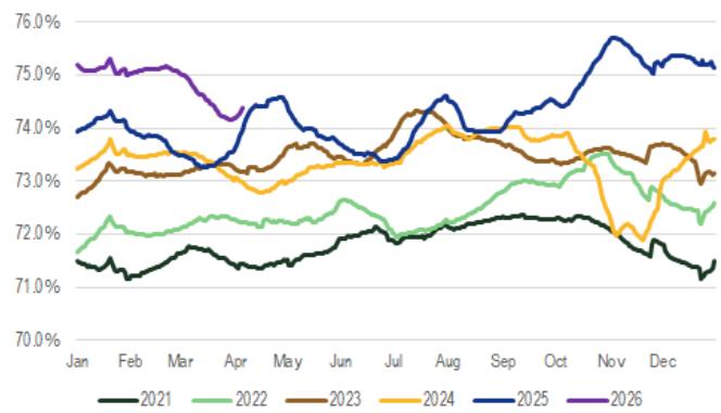 高盛发布美国炼油行业研报,维持 Par Pacific (PARR) 和 Delek US (DK) 为买入评级,目标价分别看至 77 美元和 55 美元。报告强调西海岸市场结构性趋紧及小型炼油厂豁免权在高 RIN 价格环境下的显著价值,预计 DK 在 2026-2027 年总资本回报率达 6%。