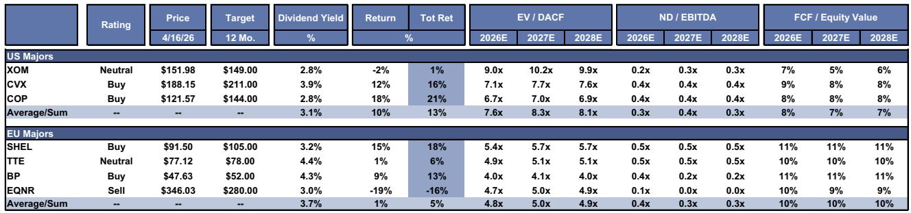 高盛发布美国大型石油股一季度前瞻,在布伦特原油 75 美元假设下,板块平均总回报预期为 13%。报告维持康菲石油(COP)为确信买入评级,目标价看至 144 美元,看好其自由现金流拐点及低地缘风险优势;同时给予雪佛龙买入评级,但对估值较高的埃克森美孚持中性观点。