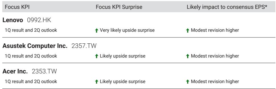 摩根士丹利指出,大中华区 PC 硬件 OEM 厂商一季度营收及利润率有望超预期,主要得益于需求前置及产品高端化策略。但鉴于内存成本持续上升及需求透支,该行维持下半年谨慎观点,首选联想,低配宏碁与华硕。